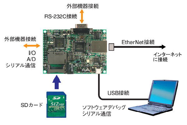 - SDカードインターフェイスを搭載しているため、リムーバブルストレージとしての使用やOSの搭載が容易