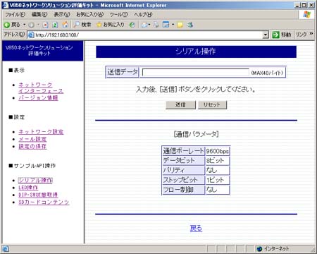 WEBブラウザよりRS-232C通信を行うサンプルです。