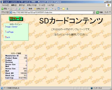 WEBブラウザよりSDカード内のHTMLコンテンツを表示させるサンプルです。