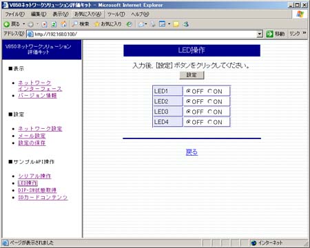 WEBブラウザより評価キット上のLEDの点灯/消灯を操作するサンプルです。
