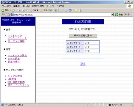 評価キット上のディップスイッチの状態(ON/OFF)を取得し、WEBブラウザにその状態を表示するサンプルです。